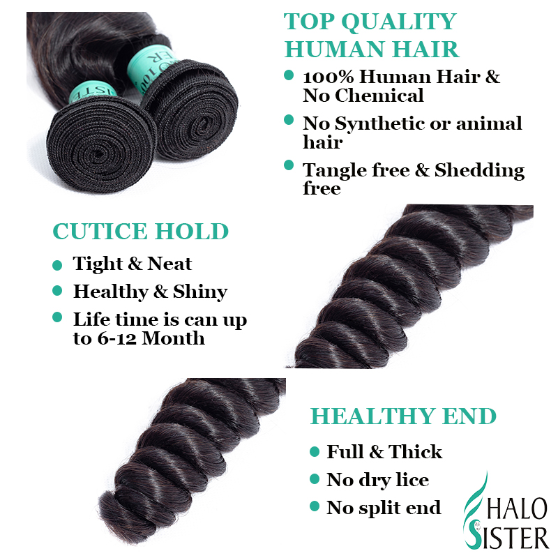 Halosister Golden Grade Virgin Brazilian Loose Wave Weave Bundles Deals With Frontal Natural Black