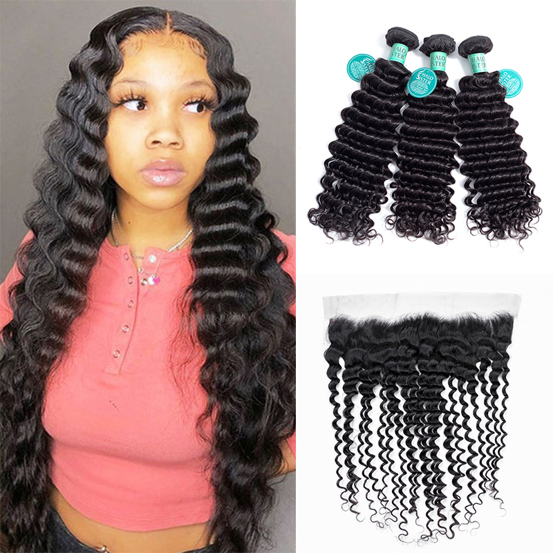Halosister Golden Grade Brazilian Virgin Deep Wave Hair Shop With Frontal Natural Black